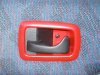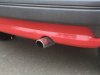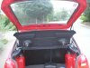 Auf diesen Bildern lassen sich alle weiteren Änderung prima auf einen Blick sehen. Zunächst bekamen nun fast alle ehemals schwarzez Plastikteile im Innenraum einen roten Anstrich. Der rote Schaltsack und der alu-rote Schaltknauf passen daher auch perfekt zum Rest. Der Modellfiesta in der Mitte ist ein Geschenk von meiner (jetzt Ex-)Freundin und bekam dort einen Ehrenplatz. Das Display oben rechts gehört zu einem Thermometer, welches ich nachträglich eingebaut habe (der Fühler sitzt vorne am Scheinwerfer). Bei ebay erstand ich dann noch kostengünstig ein paar Einstiegsleisten für den Fiesta, auch etwas, was nicht jeder hat. Achja, beinahe hätte ich es vergessen, in diesem Monat verpasste ich meinem FoFi auch den schon fast obligatorischen Dachspoiler aus dem RS-Programm von Ford. Außerdem lackierte ich die Zierleiste in der Heckstoßstange passend zur Front ebenfalls in Wagenfarbe.